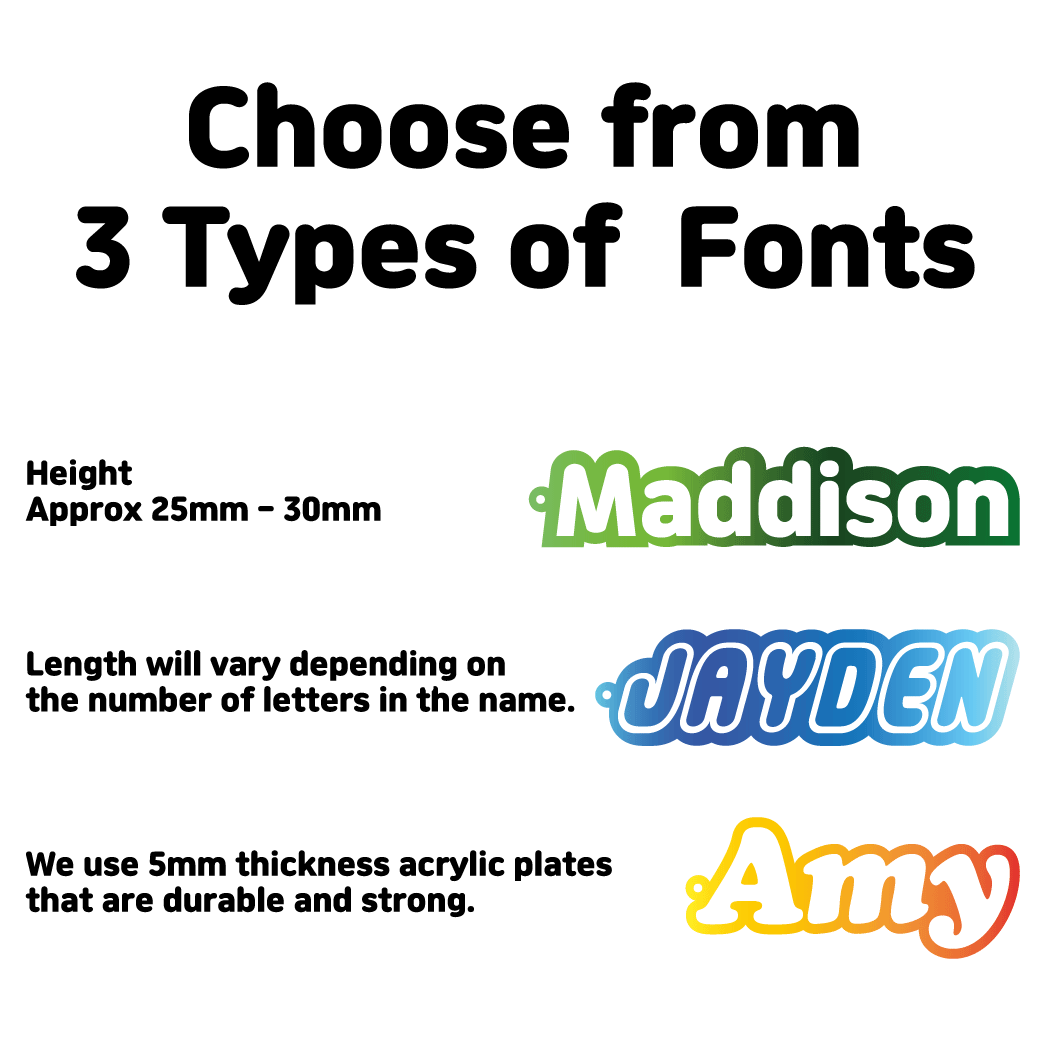 Create your one-of-a-kind keyring with your favourite colour and font!