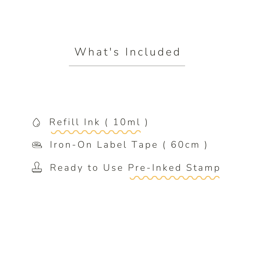 ( Includes pre-loaded ink, refill ink, and an iron-on label for thin fabrics. )